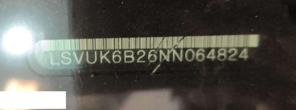 底盘号码 LSVUK6B26NN064824 变速箱类型 自动