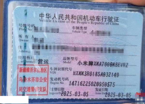 初次登记日期 2025-03-05 车辆名称 小米汽车 小米SU7