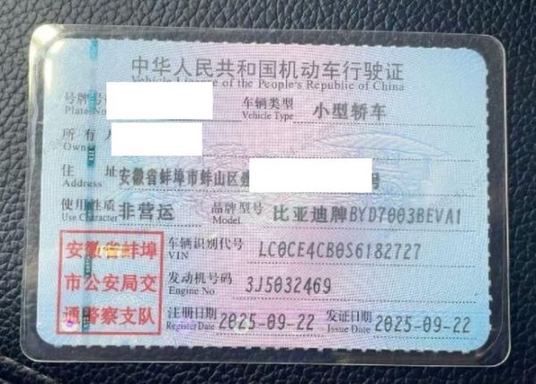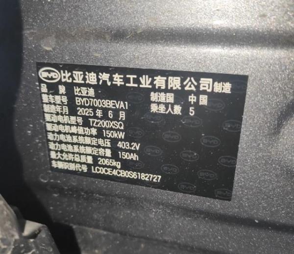 初次登记日期 2025-09-22 车辆名称 比亚迪 元