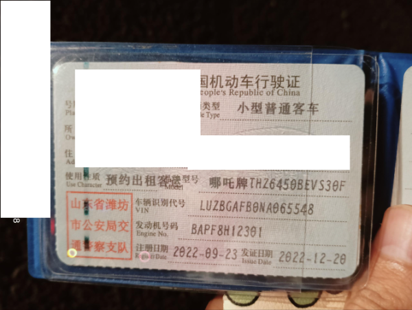 车牌号 鲁****** 品牌 哪吒