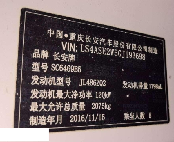 底盘号码 LS4ASE2W5GJ193698 变速箱类型 手自一体