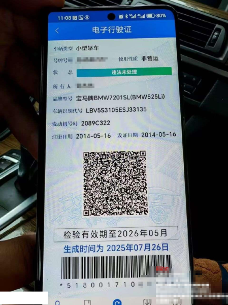 初次登记日期 2014-05-16 车辆名称 宝马5系