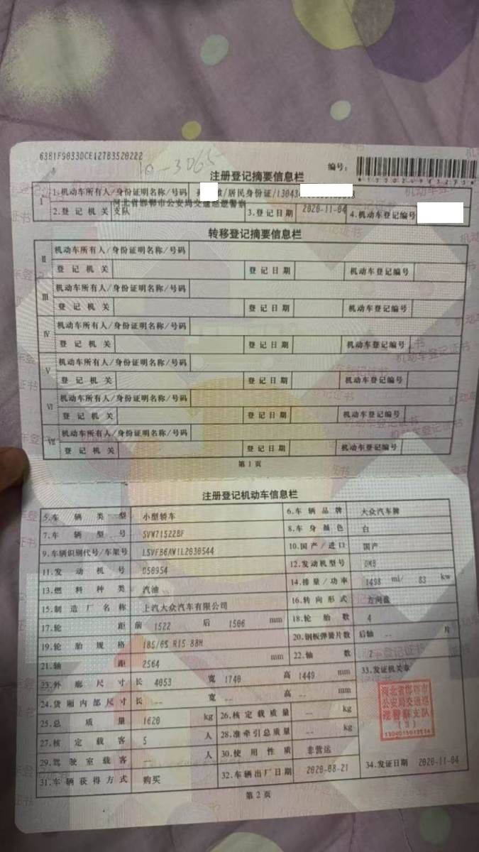 车牌号 冀****** 品牌 大众