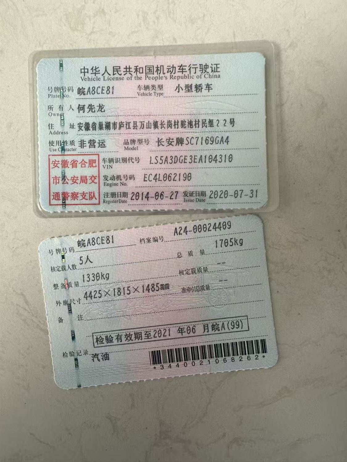 车牌号 皖****** 品牌 长安