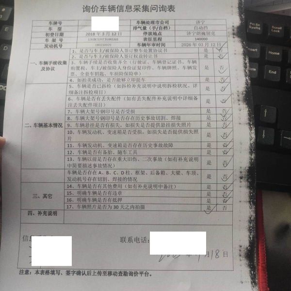 车架号是否受损 使用性质 非营运