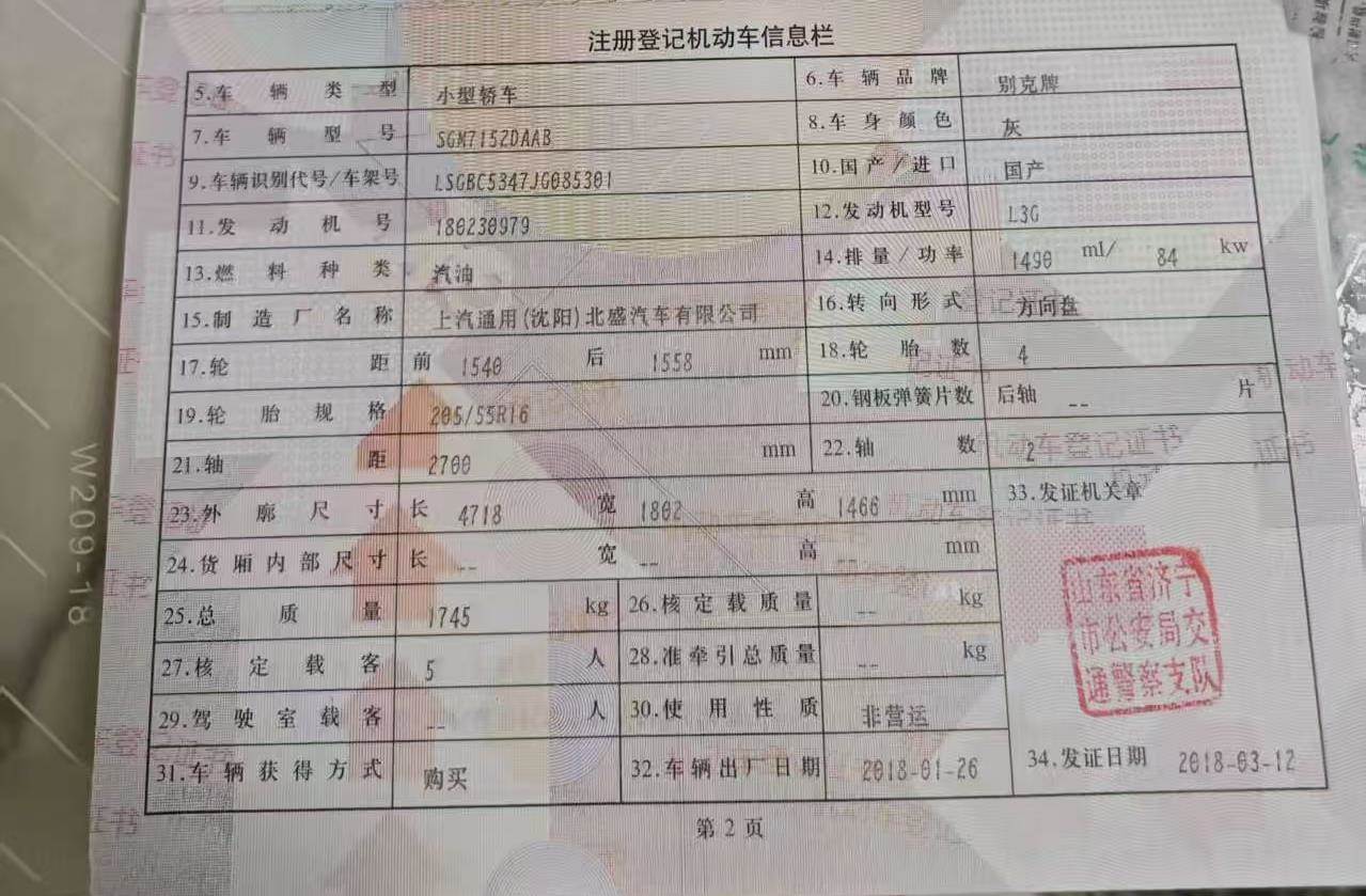 车牌号 鲁****** 品牌 别克