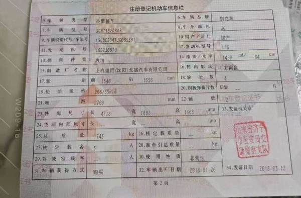 初次登记日期 2018-03-12 车辆名称 别克 威朗
