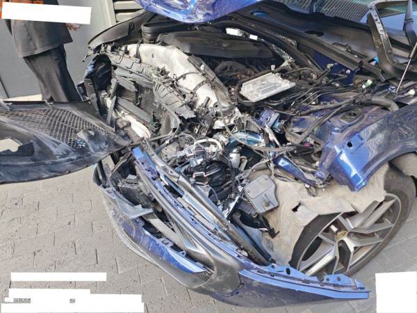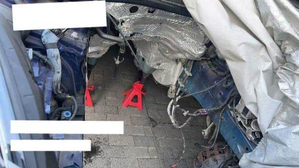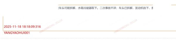 变更过车牌,实际一手车;发动机后移,后续车头可能拆解,水箱冷凝器取下。二次事故不详;车头已拆解,发动机抬下