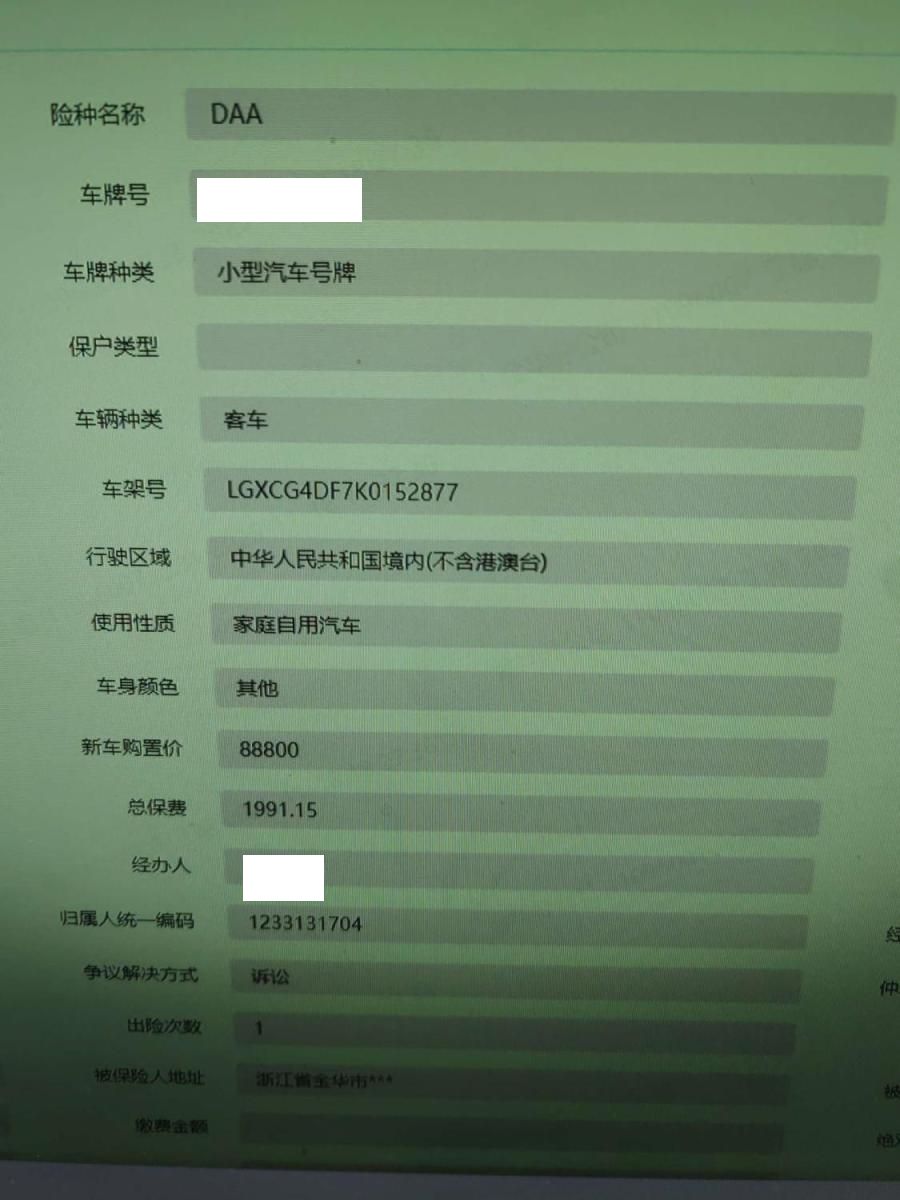 车辆归属地 浙江省金华市 车辆停放仓库 浙江省金华市金华市