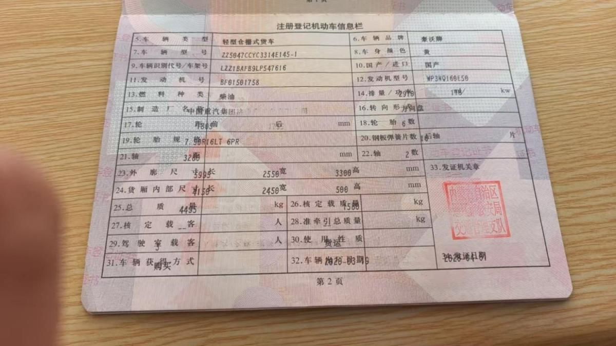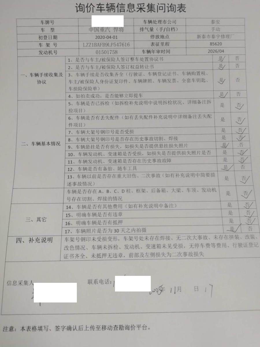 车架号是否受损 使用性质 货运