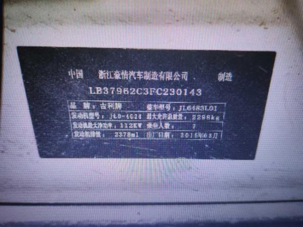 初次登记日期 2015-04-27 车辆名称 吉利汽车