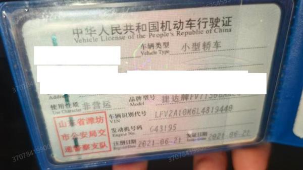初次登记日期 2021-06-21 车辆名称 捷达VA3