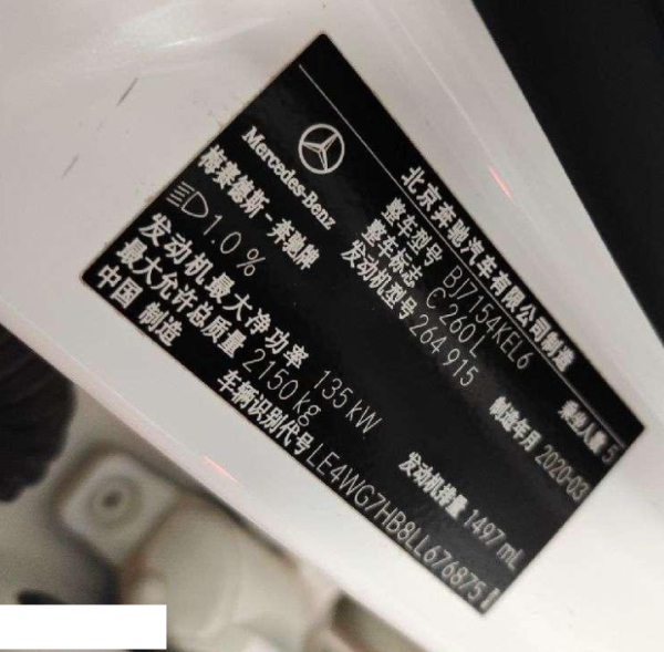初次登记日期 2021-01-05 车辆名称 奔驰C级