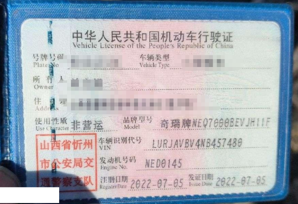 车牌号 晋****** 品牌 奇瑞