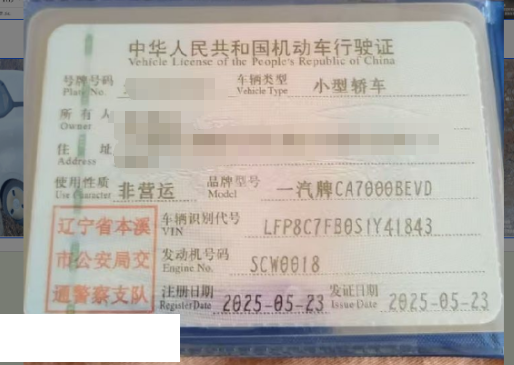 车牌号 辽****** 品牌 奔腾
