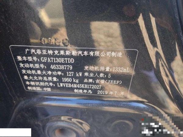 初次登记日期 2019-11-22 车辆名称 Jeep 指南者