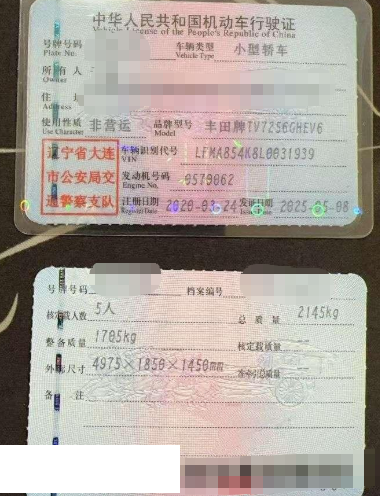 车牌号 辽****** 品牌 丰田