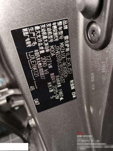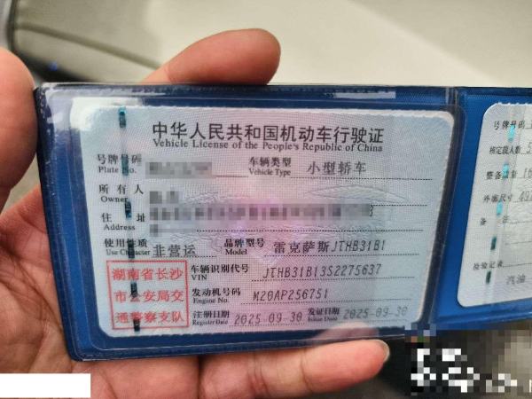 初次登记日期 2025-09-30 车辆名称 雷克萨斯