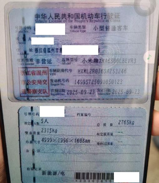 车牌号 浙****** 品牌 小米