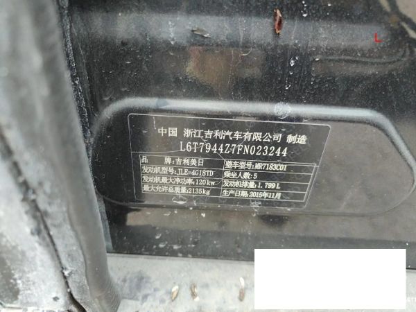初次登记日期 2015-12-10 车辆名称 吉利汽车