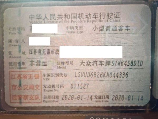 车辆归属地 江苏省无锡市 车辆停放仓库 江苏省无锡市无锡市