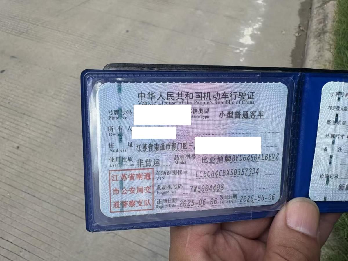 初次登记日期 2025-06-06 车辆名称 比亚迪