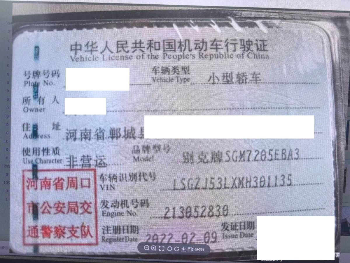 车牌号 豫****** 品牌 别克