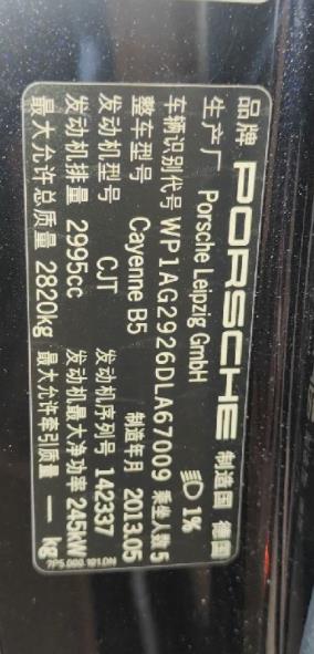 底盘号码 WP1AG2926DLA67009 变速箱类型 手自一体