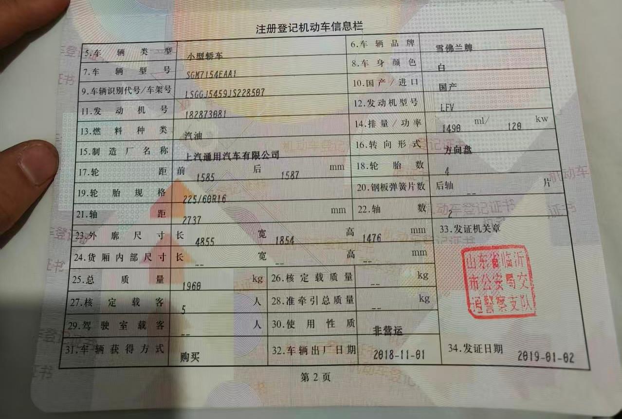 初次登记日期 2018-11-01 车辆名称 雪佛兰 迈锐宝