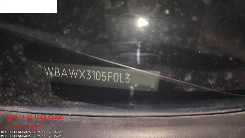 底盘号码 WBAWX3105F0L38960 变速箱类型 手自一体