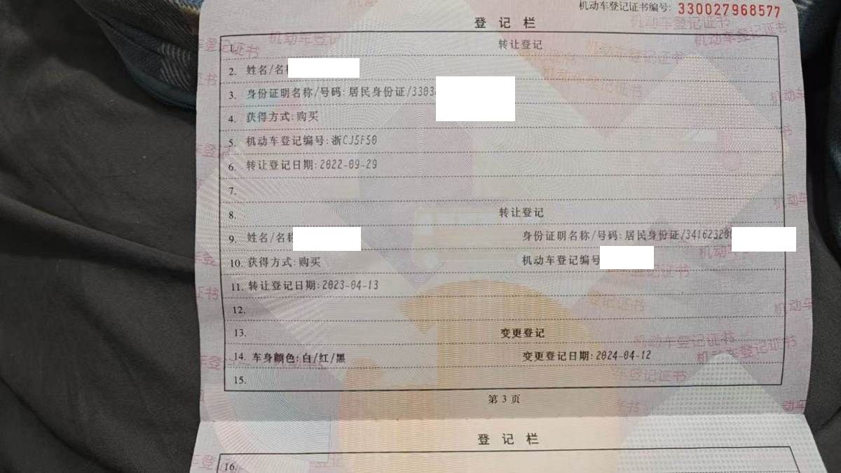 车牌号 浙****** 品牌 雅马哈