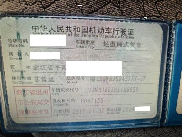 车辆归属地 浙江省温州市 车辆停放仓库 浙江省温州市温州市