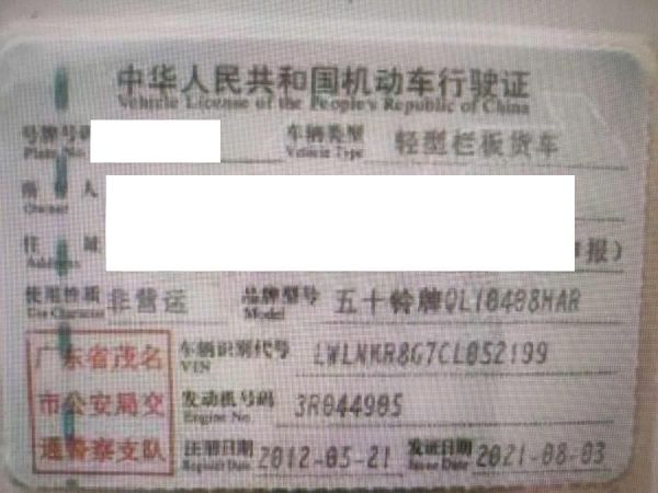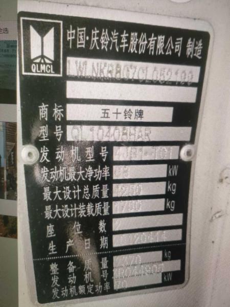 初次登记日期 2012-05-21 车辆名称 庆铃(五十铃