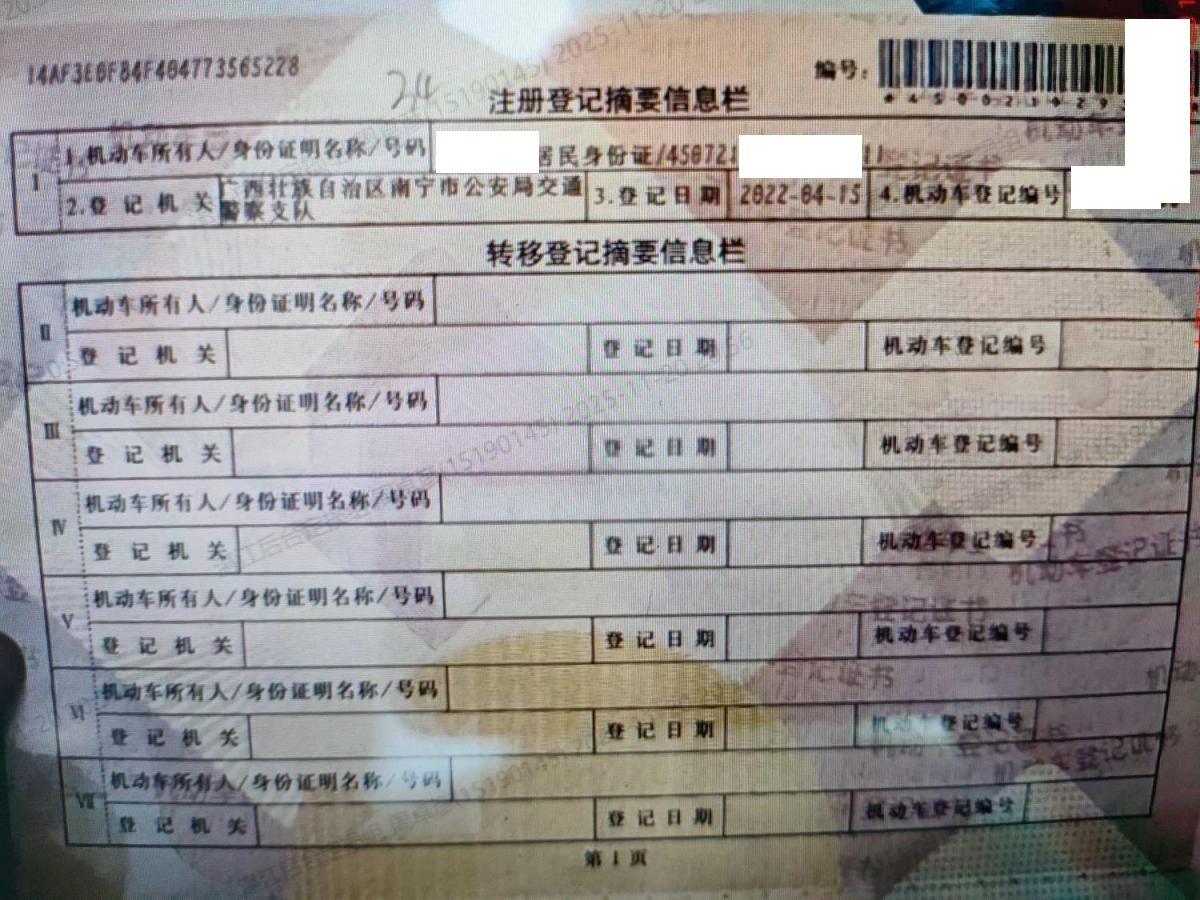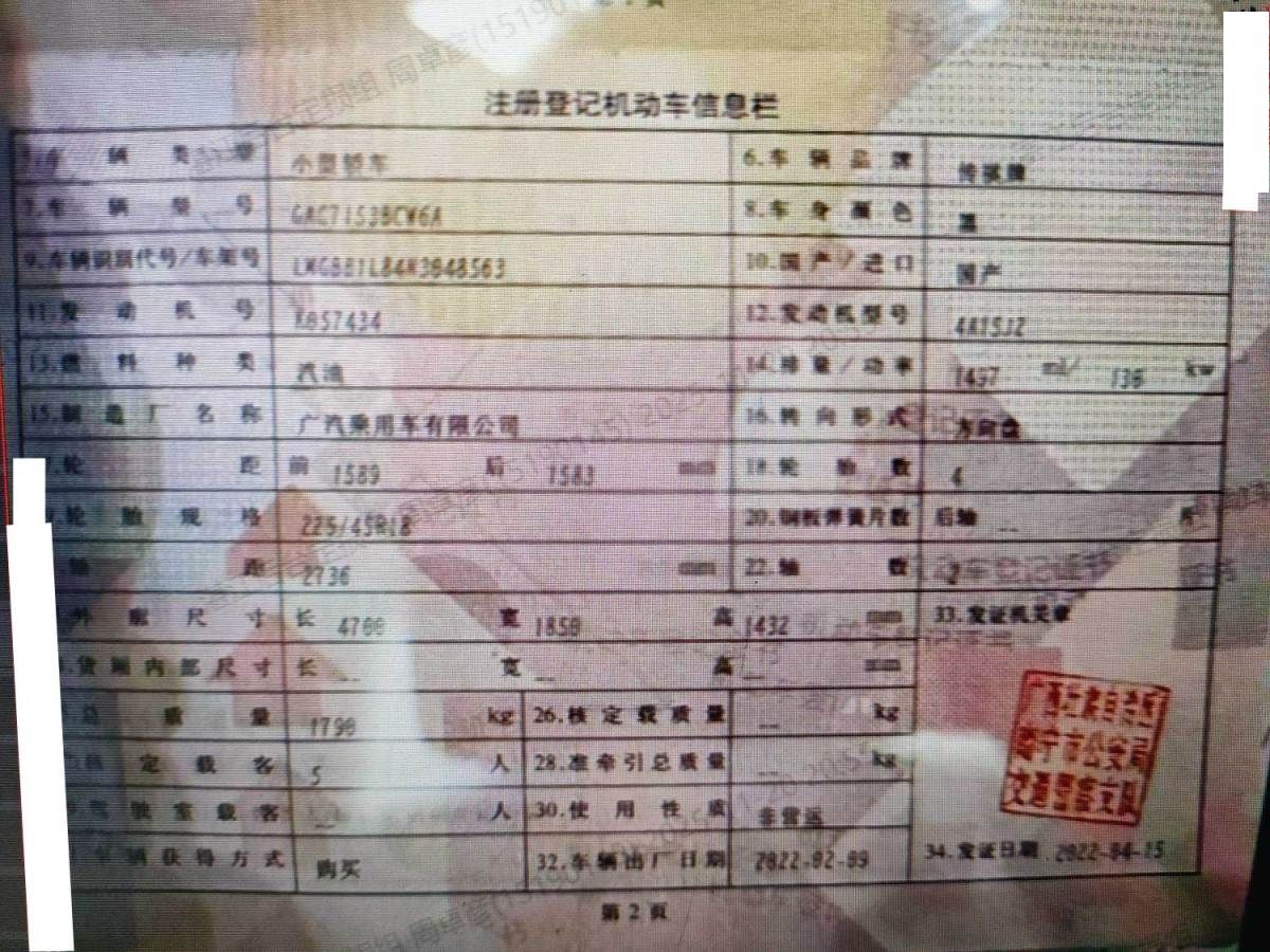 初次登记日期 2022-04-15 车辆名称 广汽传祺