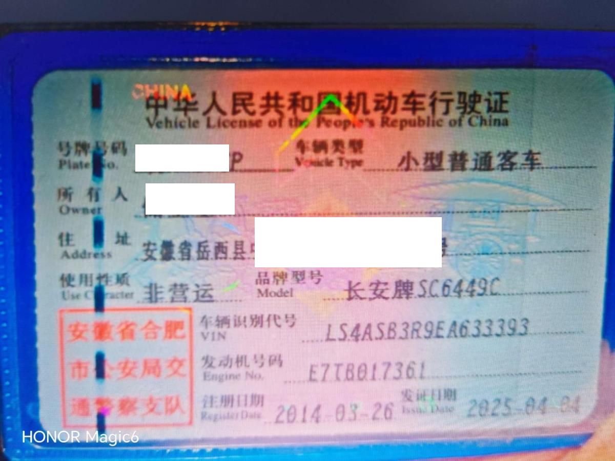 车牌号 皖****** 品牌 长安