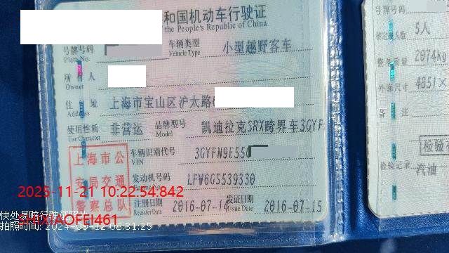 初次登记日期 2016-07-14 车辆名称 凯迪拉克SRX