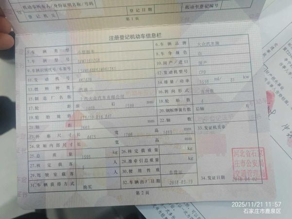 初次登记日期 2018-04-02 车辆名称 大众 桑塔纳