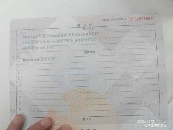 车辆归属地 河北省石家庄市 车辆停放仓库 河北省石家庄市石家庄市