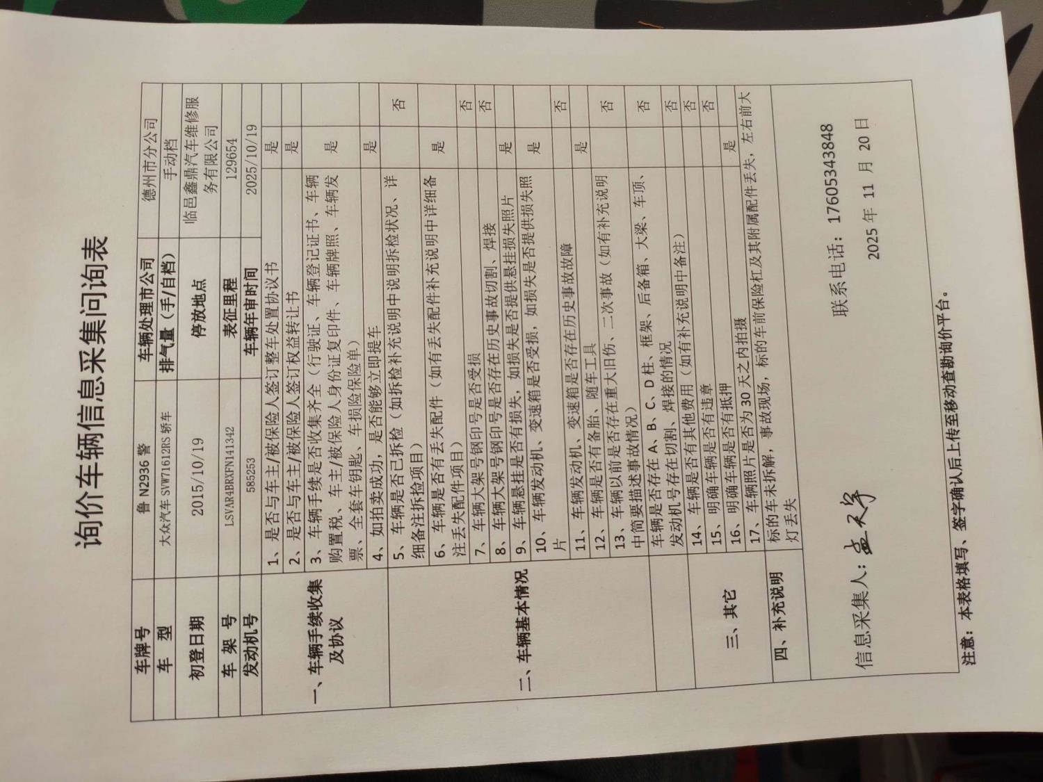 车架号是否受损 使用性质 警用