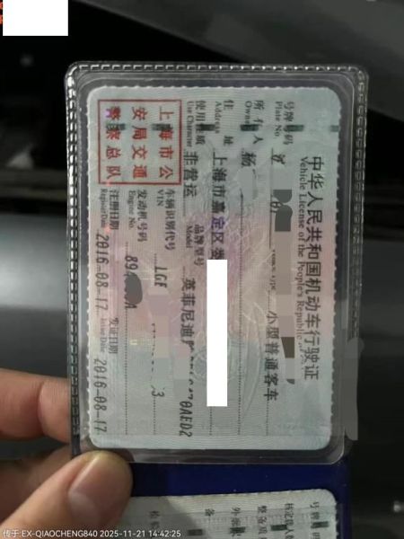 初次登记日期 2016-08-17 车辆名称 英菲尼迪QX50
