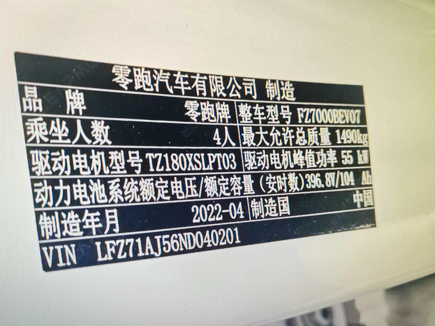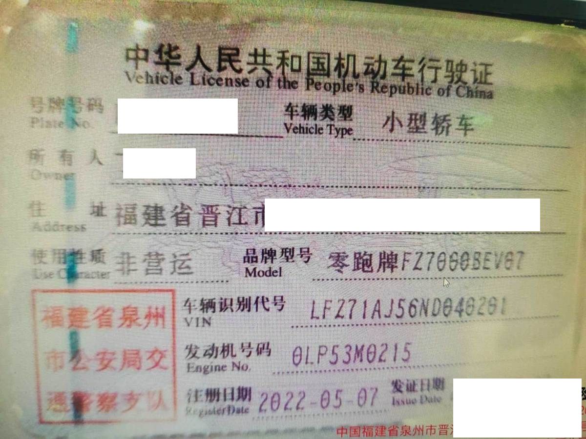初次登记日期 2022-05-07 车辆名称 零跑汽车