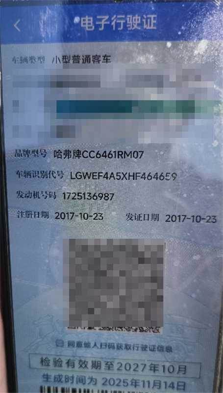 初次登记日期 2017-10-23 车辆名称 哈弗牌