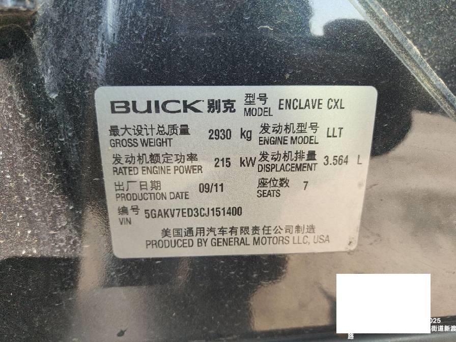 底盘号码 5GAKV7ED3CJ151400 变速箱类型 手自一体