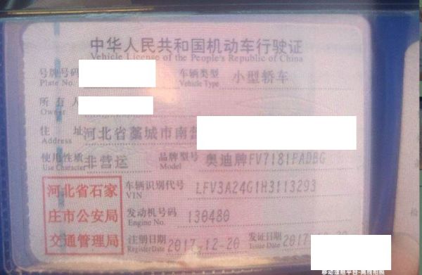 车牌号 冀****** 品牌 奥迪