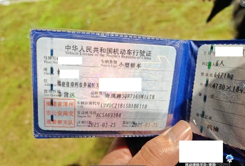 车牌号 闽****** 品牌 奇瑞