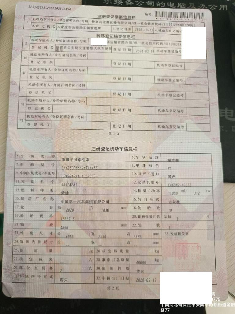 车牌号 冀****** 品牌 解放