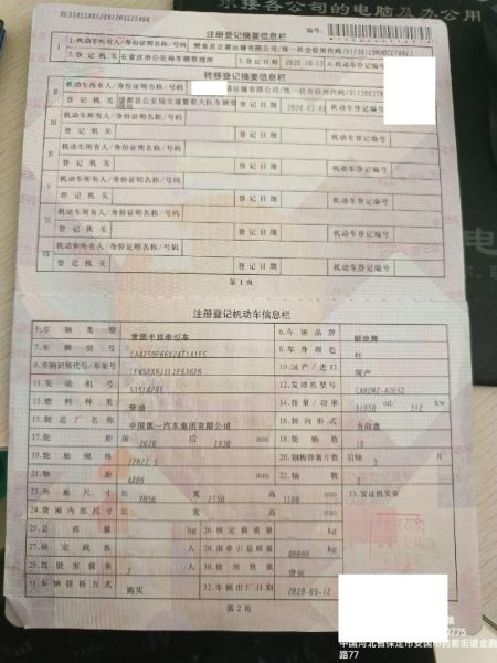 初次登记日期 2020-10-13 车辆名称 一汽解放 解放J6P