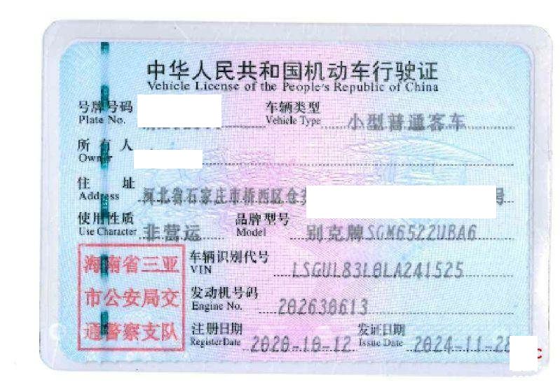 车辆归属地 海南省三亚市 车辆停放仓库 河北省石家庄市石家庄市