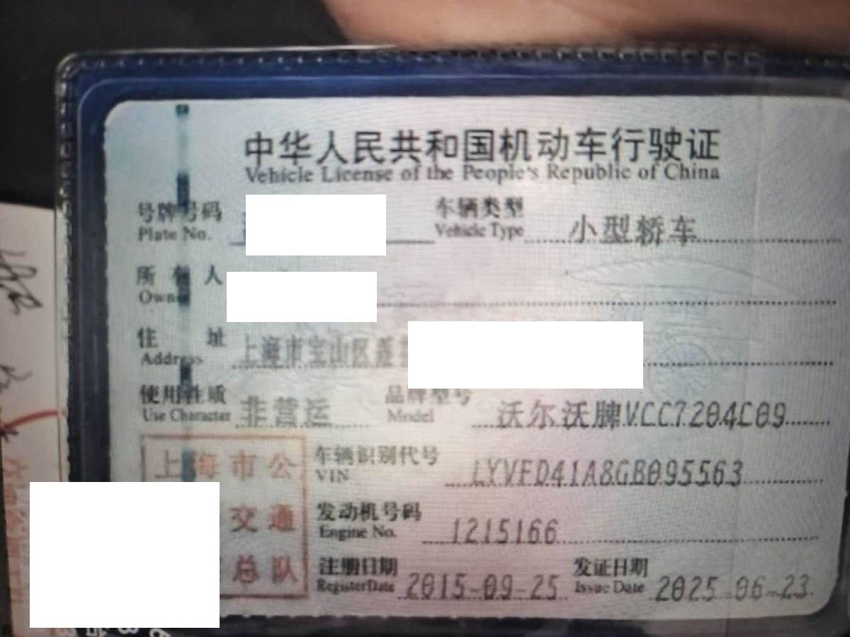 初次登记日期 2015-09-25 车辆名称 沃尔沃