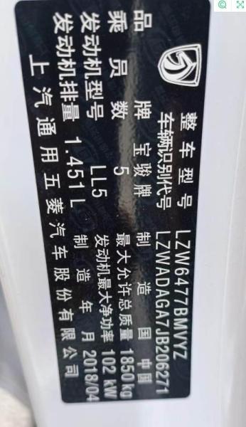 初次登记日期 2018-05-21 车辆名称 宝骏牌